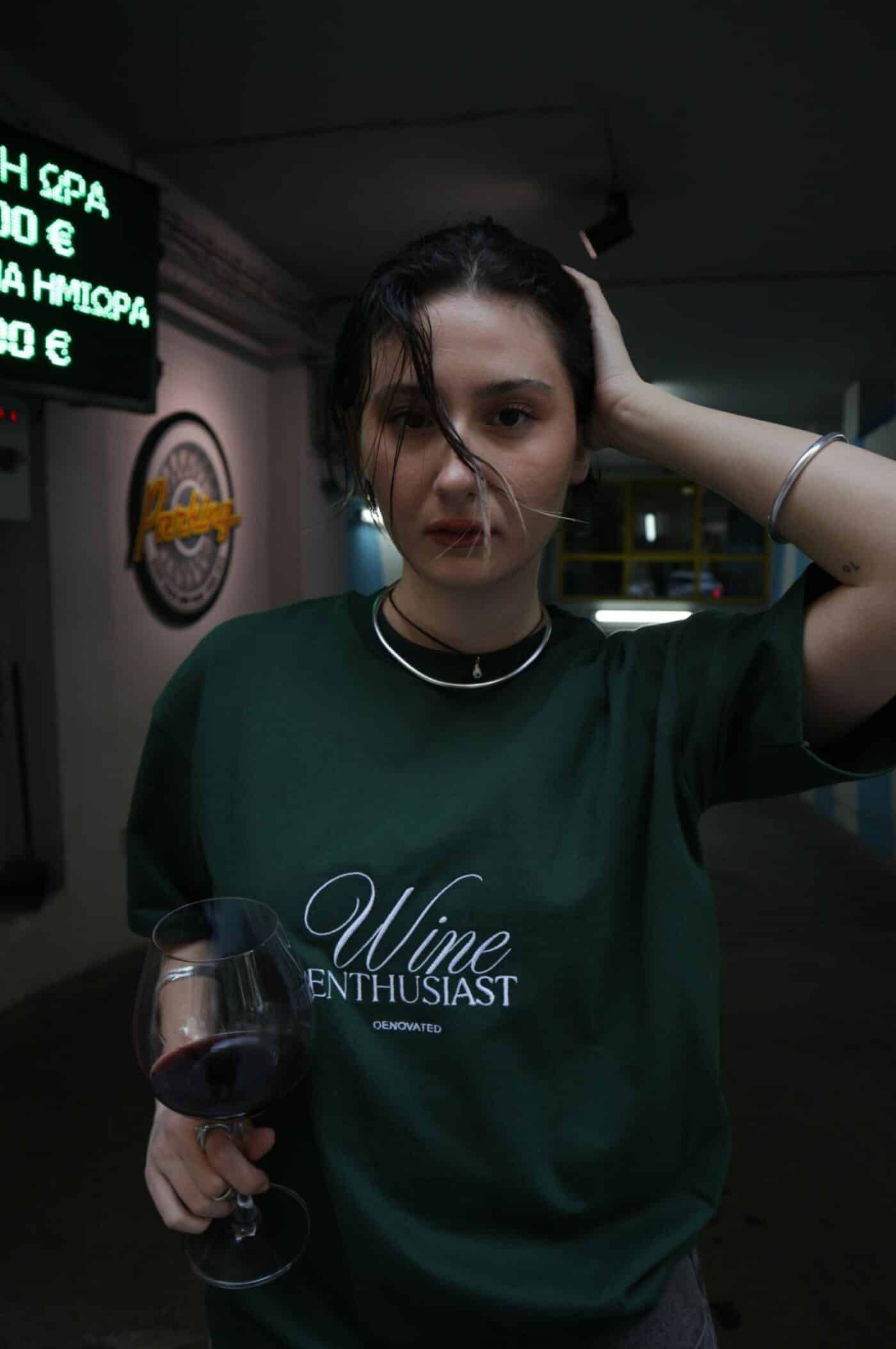 The Wine Enthusiast pine green t-shirt is made in a loose fit from 100% heavyweight cotton jersey. It is detailed with a embroidered print in front.